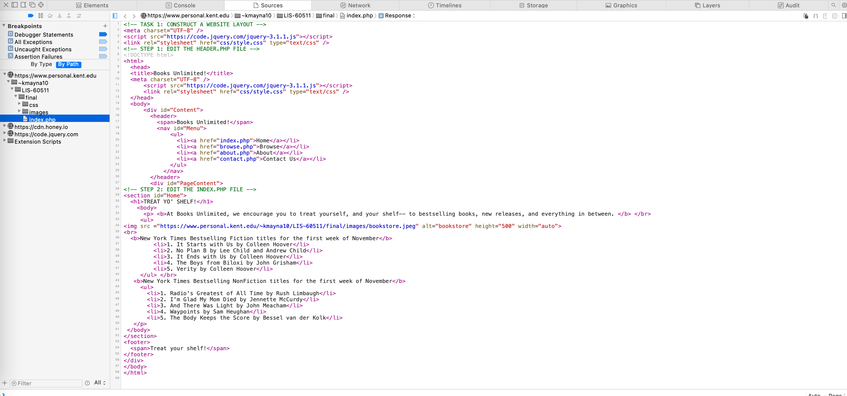 In addition, I added dynamic content using JSON and a REST API (The Open Library Books API).