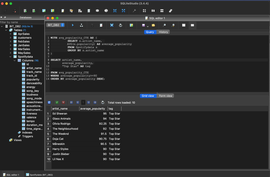 Using data from Kaggle, I generated a table in SQLiteStudio to analyze the Top 50 songs on Spotify from 2021.