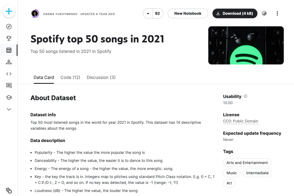 At the end of the year, my social media is filled with Spotify Wrapped screen captures. This tiny, individual visualization and simple data analysis takes the user’s history and gives them a summary of their top artists, songs and listening habits. The meteoric rise of TikTok continued, its influence on music distribution and listening habits is undeniable. Coincidentally, each of the artists pulled in this query for those musicians with a popularity rating over 90 are fixtures on TikTok.